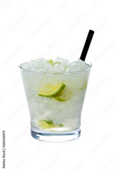 caipiroska cocktail on isolated background with lima