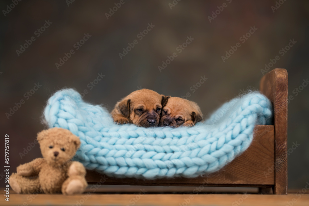 Weimaraner dog the dog is playing on the bed. ripped the paper. naughty but playful dog portrait.
