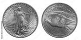US Twenty 20 Dollars Gold Coin isolated of whtie background