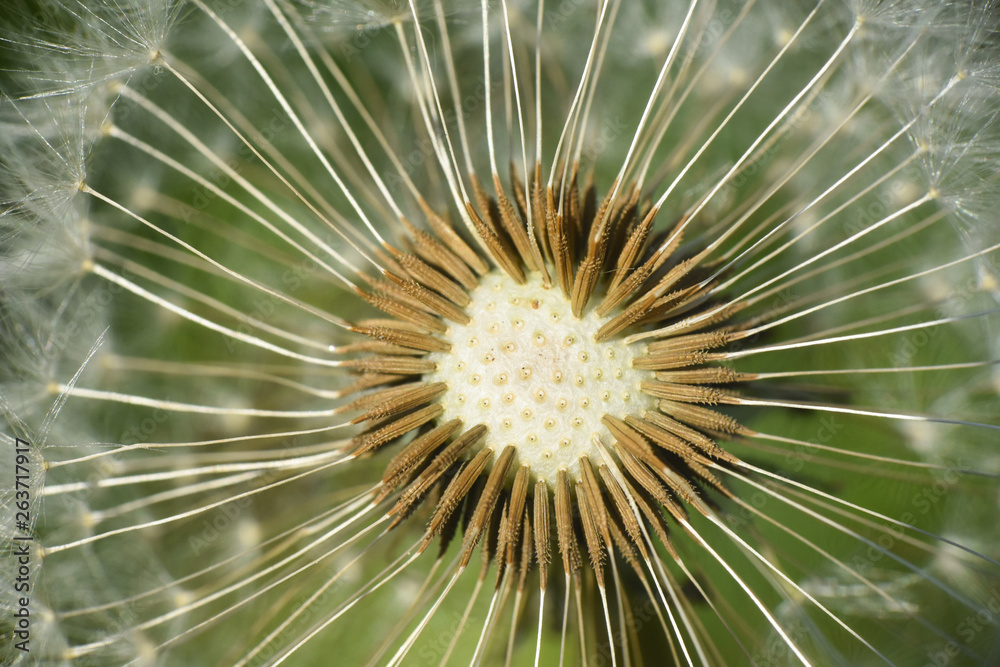 Dandelion, blowing ball. Bloomed dandelion seeds close up