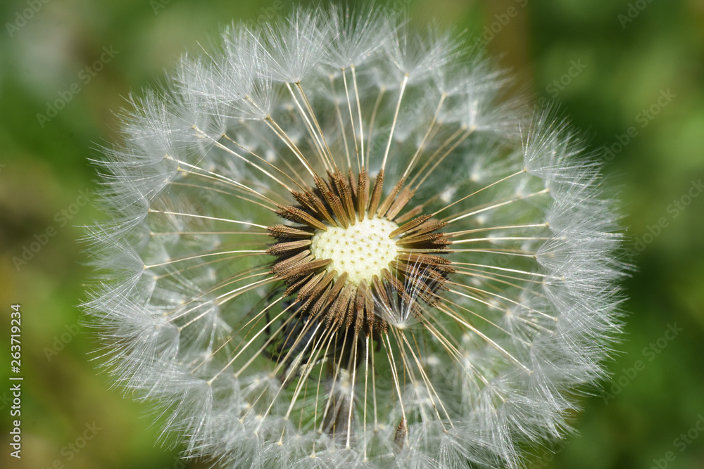 Dandelion, blowing ball. Bloomed dandelion seeds close up