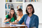 Smart spanish female student with group of learning students