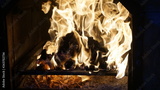 Empty barbecue flaming charcoal grill with bright flames of fire. Barbeque fire abstract pattern texture background. Fire under barbeque grill closeup. flames in a barbecue is ready for cooking meat.