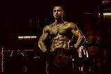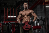 Young handsome sportsman bodybuilder weightlifter with an ideal body