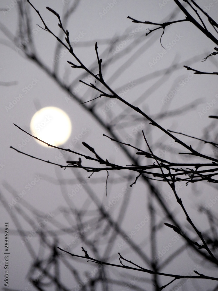 Mond hinter Zweigen