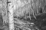 Close up picture of a birch tree in a mountain forest, selective focus, color toning applied, Karkonosze National Park, Poland.