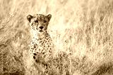 A portrait of a cheetah in the grass landscape