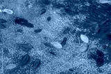 Heavy algae and leaves in an outdoor fountain pool in need of spring cleaning, horizontal aspect