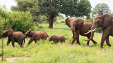 Herd of african bush elephants (Loxodonta Africana) in the Tarangire National Park in Tanzania.