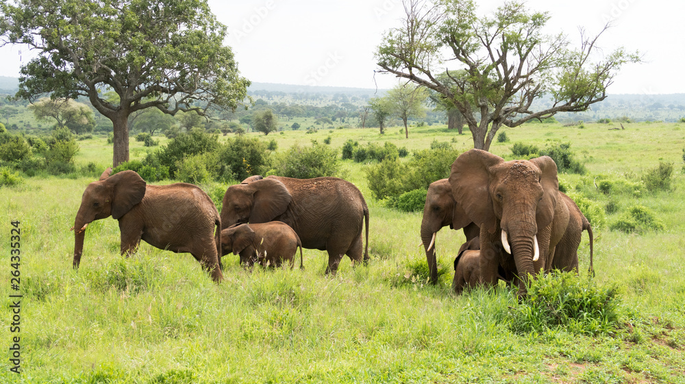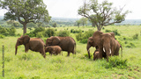 Herd of african bush elephants (Loxodonta Africana) in the Tarangire National Park in Tanzania.