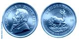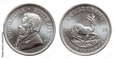 South African Krugerrand 1 ounce silver bullion coin isolated on white background