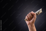 Close up woman hand holding American dollar in the dark background. Business finances, savings and bankruptcy concept.