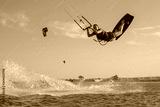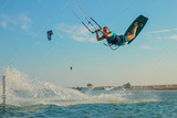 LOW ANGLE: Happy young woman jumps high in the air while kiteboarding in Greece.