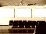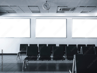 Mock up Blank Posters frame indoor with rest rows Train station waiting room Travel transit