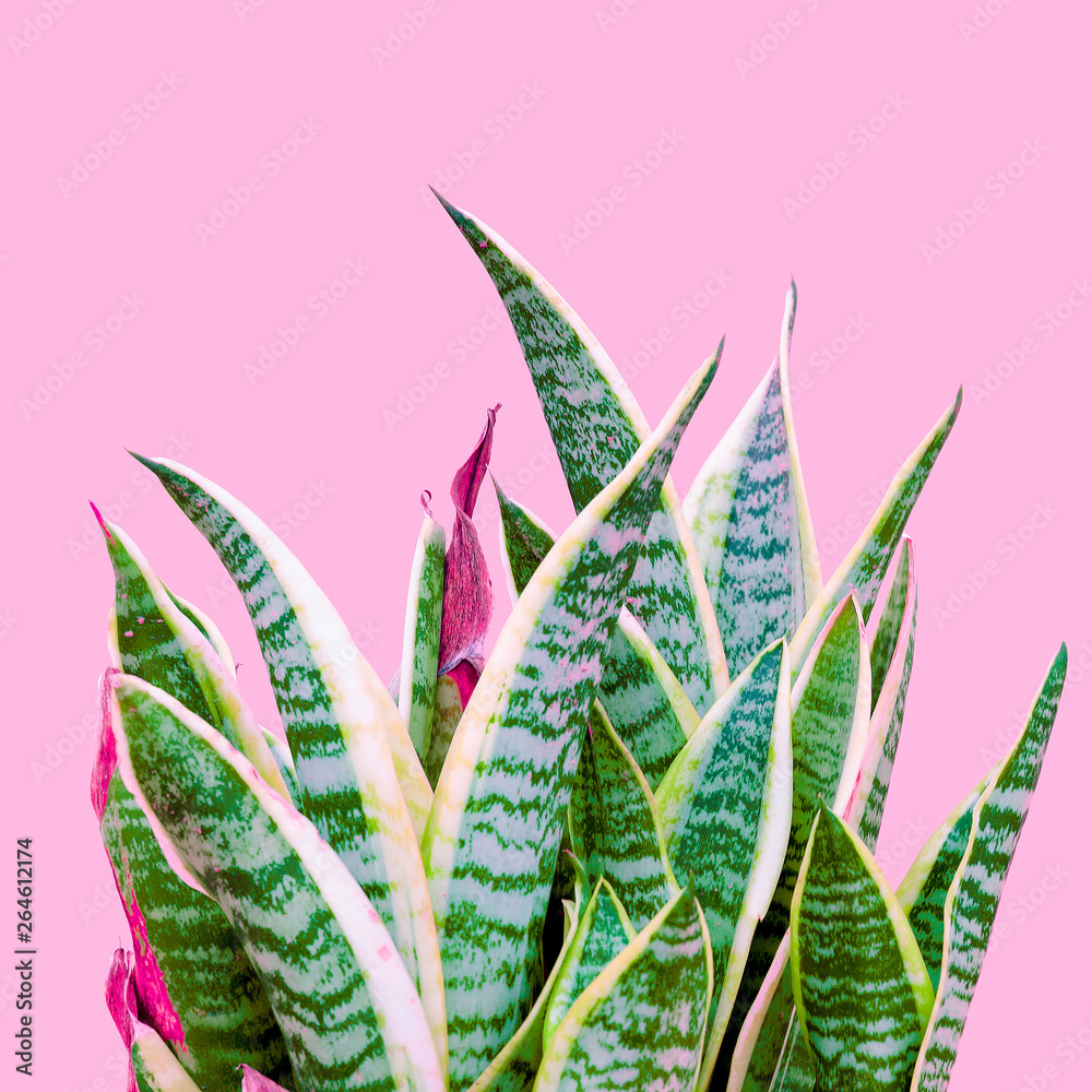 Plants on pink concept. Aloe. Plant lover. Minimal