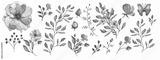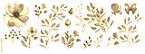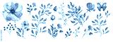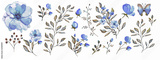Watercolor illustration. Botanical collection. Set: leaves, flowers,branches, herbs and other natural elements. Blue flowers.