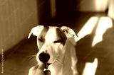 Dog and man's hand. Man feeds a dog. Closeup photo