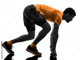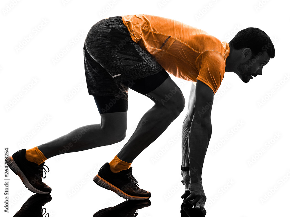 one caucasian man runner running jogging jogger silhouette isolated on white background
