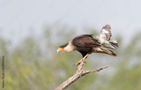 Crested Caracara harassed by Northern Mockingbird in Southern Texas