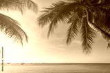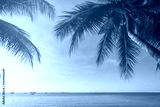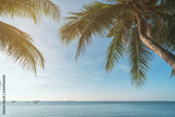 Coconut plam tree with sun and blue sky at tropical beach, Summer vacation concept