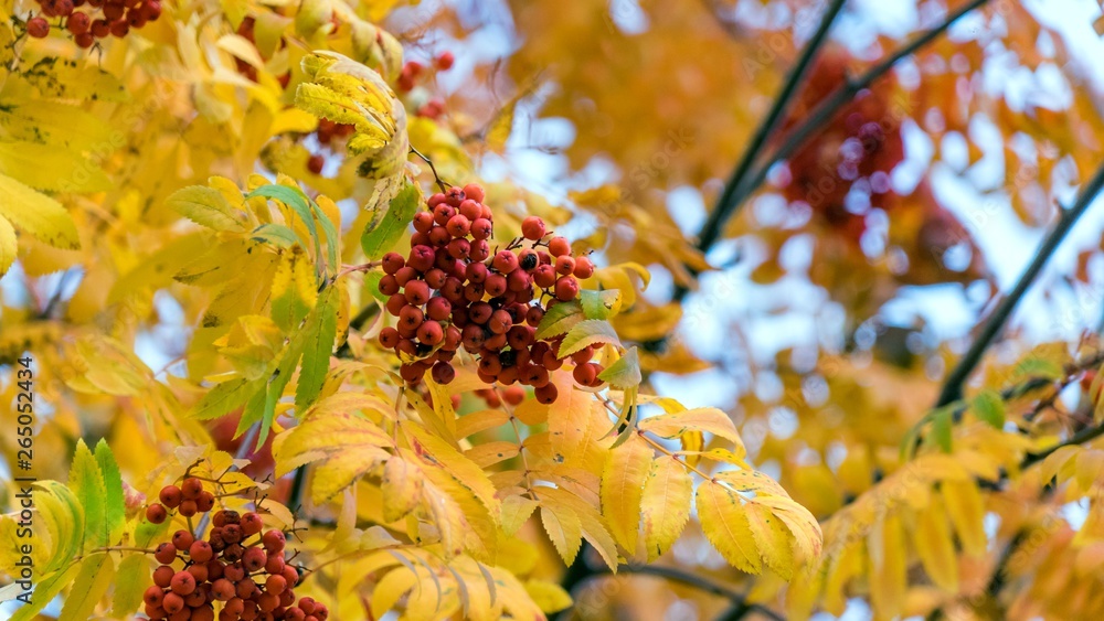Red rowan on a tree on a sunny autumn day, Moscow, Red Square.