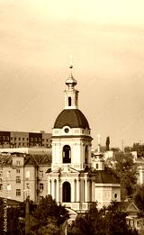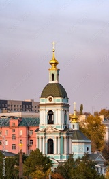 Bell tower of ancient Temple of the Life-Giving Trinity in Serebryaniki, Moscow.