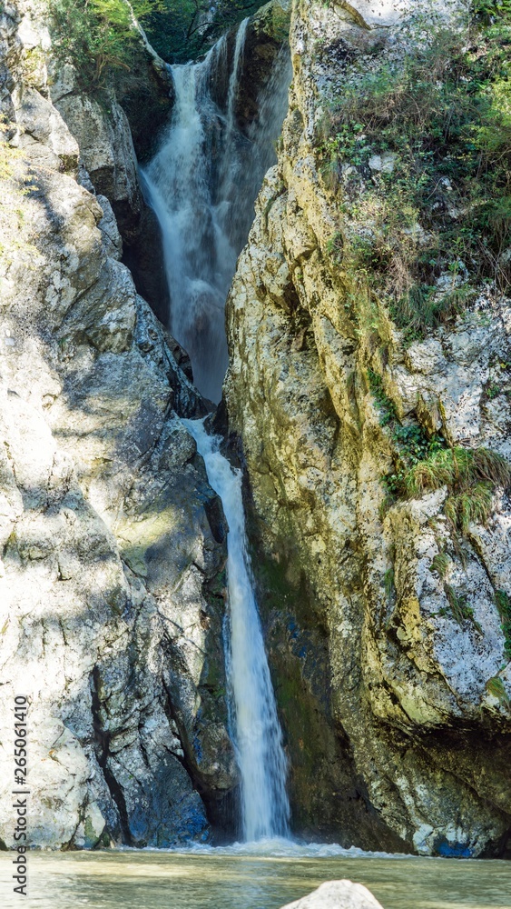 Waterfall on the Agura River in Sochi, Krasnodar Krai, Russia.