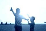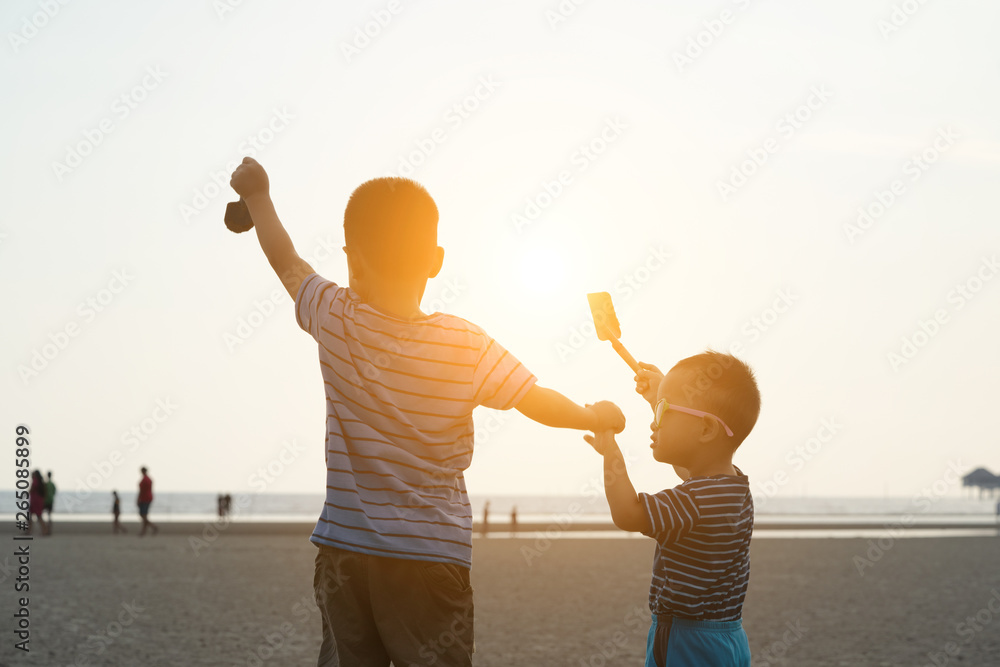 kids on the beach at sunset