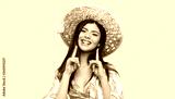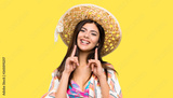 Teenager girl on summer vacation smiling with a happy and pleasant expression over isolated yellow background