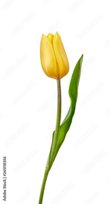 A yellow tulip flower isolated on a white background