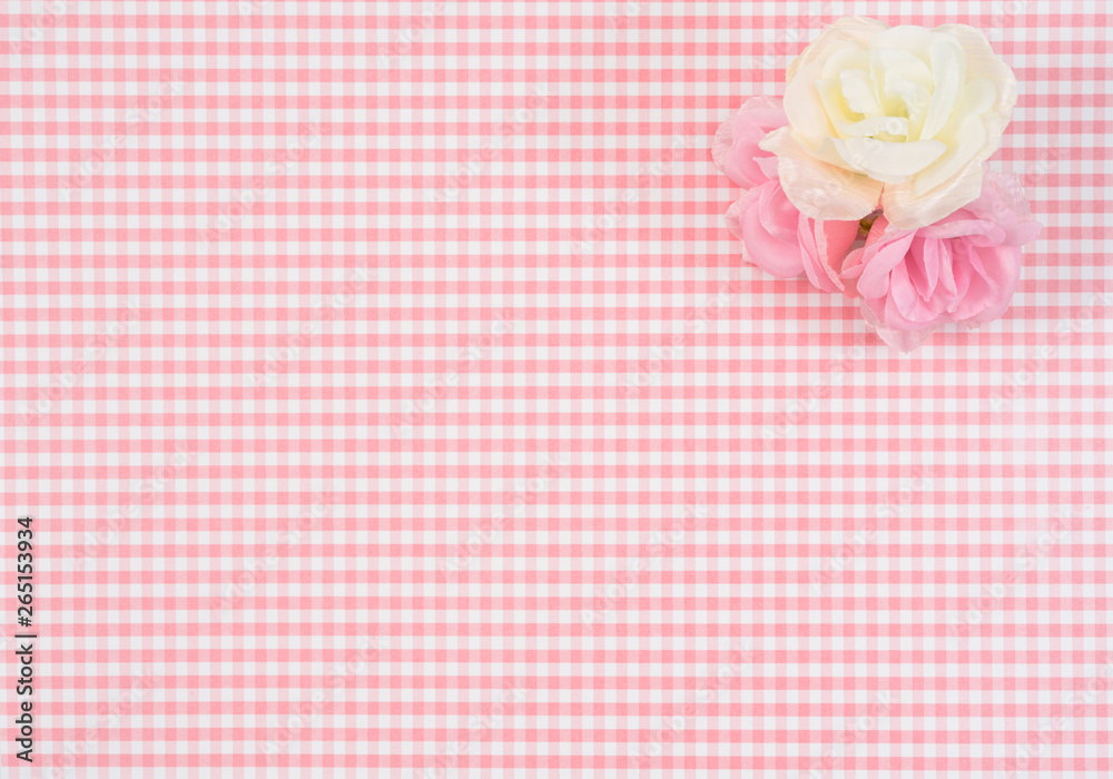 gift box with red isolated on Plaid background. Holiday decoration for Mother's Day or Women's Day.