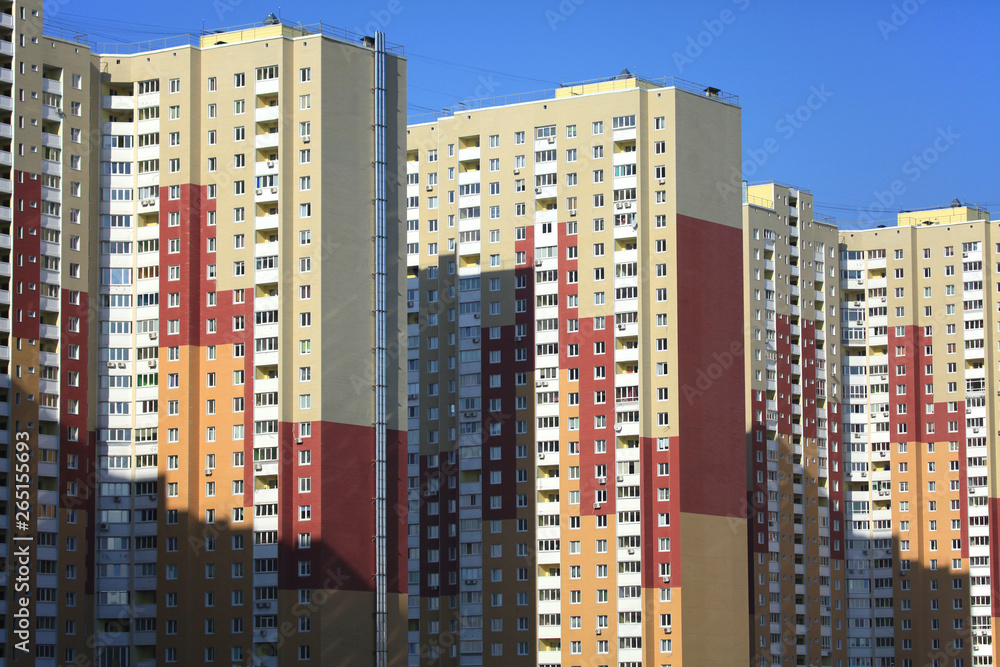 Kiev, Ukraine – February 17, 2019: The new multi-storey apartment building. A new housing estate. The exterior fragment of a new modern apartment building