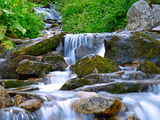 Rapid river is flowing between the stones in Carpathian montains, Ukraine. Colorful landscape of river and waterfall in mountains