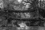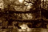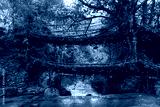 Double Decker Living Root Bridge in the green jungle, the power of nature
