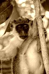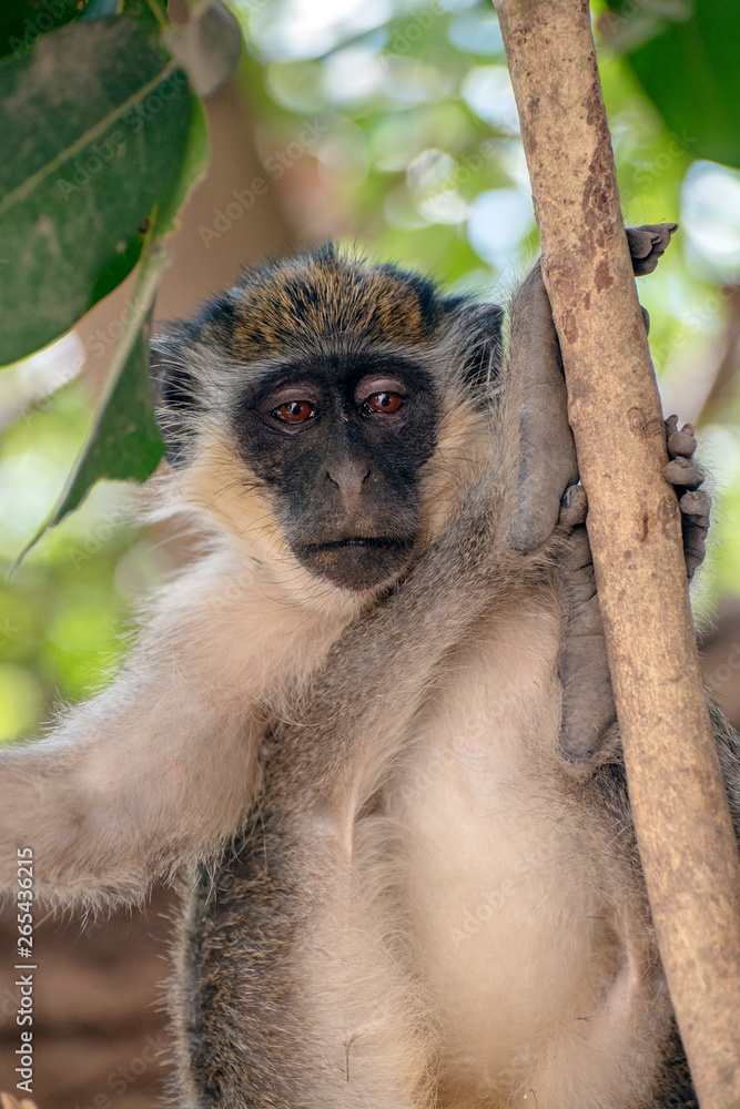 Green Vervet Monkeys in Bigilo forest park, The Gambia.
