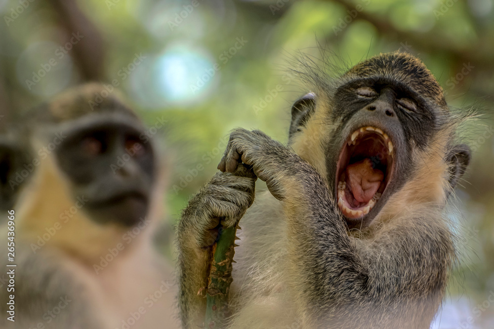 Green Vervet Monkeys in Bigilo forest park, The Gambia.