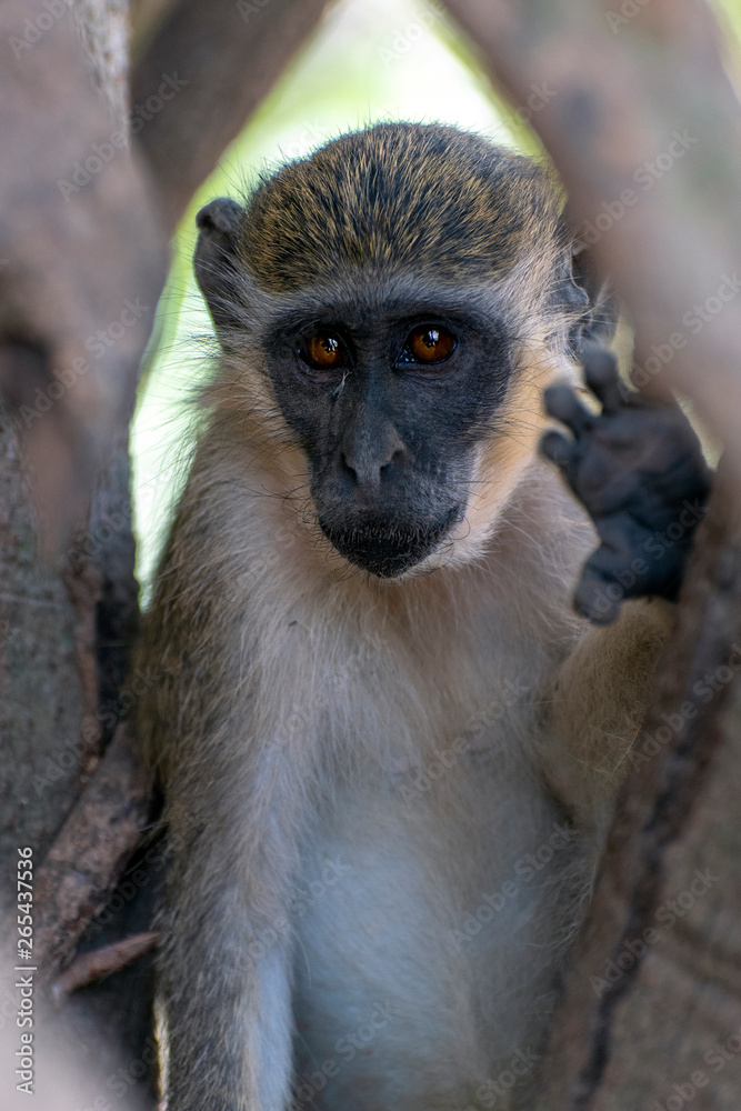 Green Vervet Monkeys in Bigilo forest park, The Gambia.
