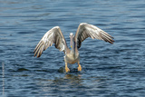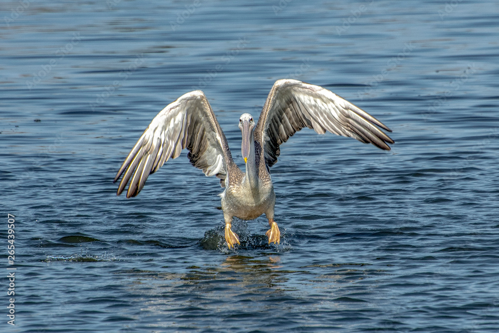 Great white pelican taking flight - river in Africa - The Gambia
