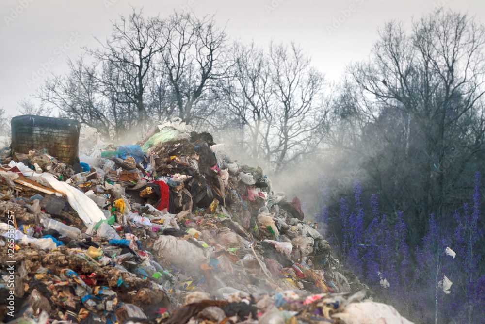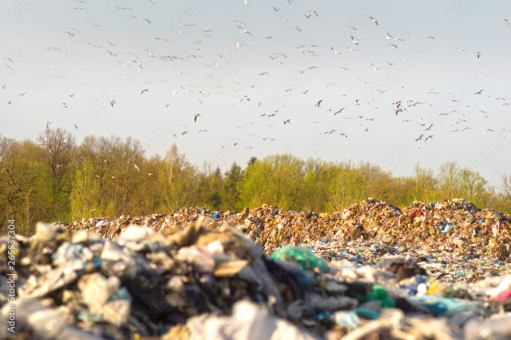 Gulls over a pile of garbage.
