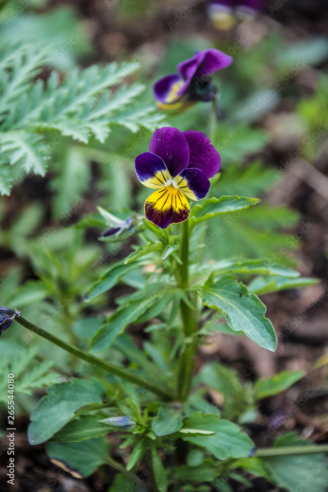 Wild Pansy Flower. Macro image of a wild spring flower. Pansies in the garden