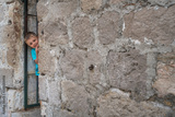 Boy playing hide and seek