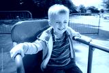 Boy spinning round on a carousel