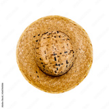 Straw Hat for Man Isolated on white Background with Clipping Path. Beautiful Top View Brown Summer Hat for People. Vintage Beach Cap Object with High Angle View, Trendy Fashion Clothes Concept.