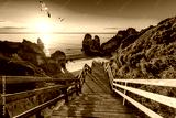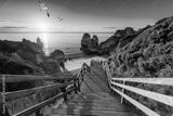 Camilo Beach (Praia do Camilo) at Algarve, Portugal with turquoise sea in background. Wooden footbridge to beach Praia do Camilo, Portugal. Wonderful view of Camilo Beach in Lagos, Algarve, Portugal.