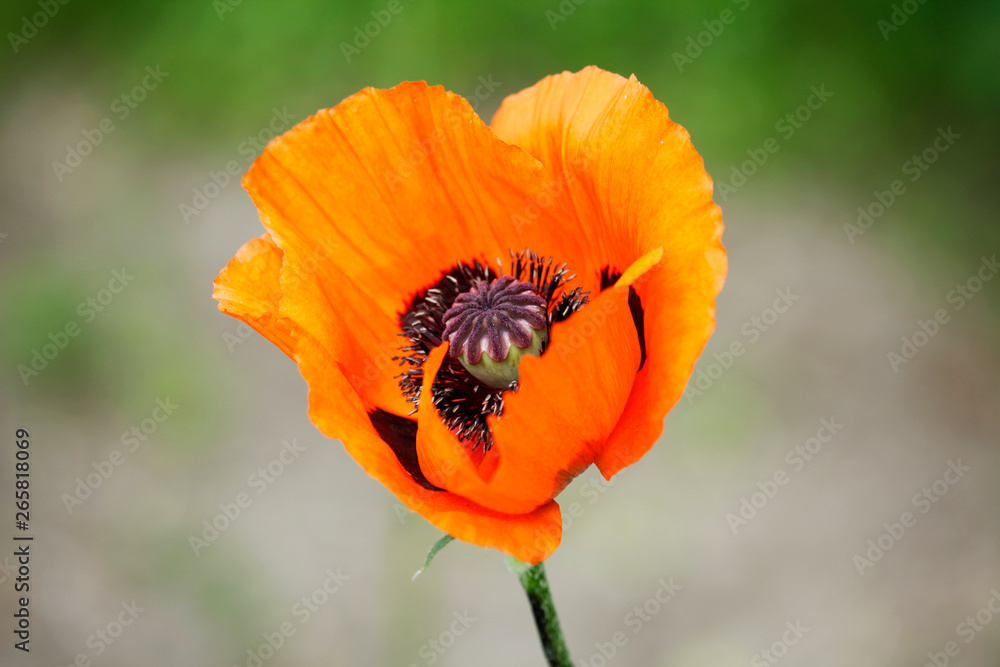 Flowering orange colored poppy. The close-up of Orientale or Turkish poppy
