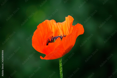 Flowering orange colored poppy. The close-up of Orientale or Turkish poppy