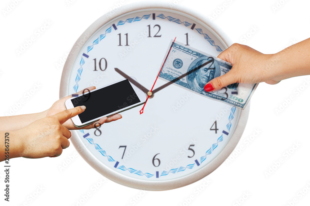 Mobile in Hand for Pay Online E Business with hand hold bank note to pay.