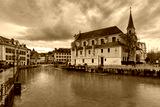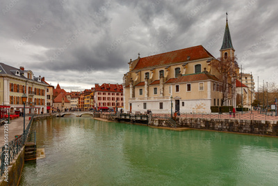 Annecy. Church of St. Maurice at sunset.