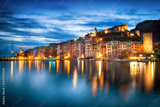 Beautiful coastal town Portovenere in Cinque Terre national park, Liguria, Italy. Famous small Italian city, Cityscape in Sunset time.