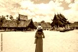 Back view of female tourist visiting the beautiful architecture of Wat Inthrawat temple is one of the finest examples of classic Lanna style architecture in Northern Thailand.